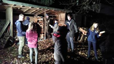Wer ein schönes Lagerfeuer haben will, muss Holz beischaffen. Weil die Vorräte zu Ende gehen, war eine Holzaktion fällig. Der ganze Stamm hat sich beteiligt, die Einen haben das geschenkte Holz auf den Anhänger geladen, die anderen das Holzlager aufgeräumt und für die Adventsfeier Plätzchen gebacken. Am Ende haben dann alle mitgeholfen, das Holz ins Holzlager einzuräumen. Mit zwei Ketten vom Anhänger zum Lager ging das erstaunlich schnell. Da fragte dann schon mal eine Mutter, die ihr Kind abholen wollte „Kann man die ausleihen?“